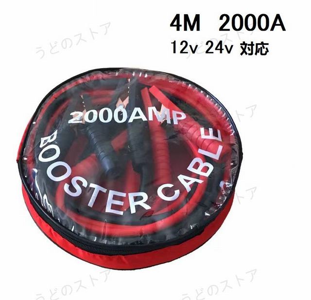 自動車用ブースターケーブル 車 ブースターケーブル 救護 緊急 4m 12v 24v 対応 大型車 2000a 絶縁カバー バッテリーあがり 対策 カー用品