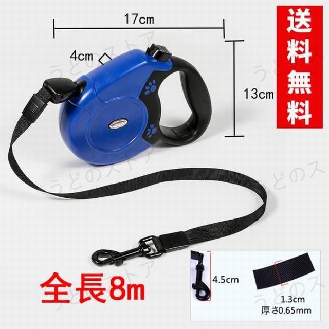 自動巻ドッグリード8m伸縮リード 犬 ペット用品 お散歩 ドッグリー人間工学に基づいたソフトなグリップ。ブレーキを固定できる機能が付いた使いやすいワンハンドブレーキシステム。ワンちゃんのお散歩用にぴったり。小〜大型犬(体重40kg未満)人間工学に基づいたソフトなグリップ。ブレーキを固定できる機能が付いた使いやすいワンハンドブレーキシステム。ワンちゃんのお散歩用にぴったり。最長8メートルまで伸ばせるのに小型軽量。長さが8メートルなので愛犬の動ける範囲も広がります。0.5m帯状リート部分は収納されません。持ち手部分はすべりにくい素材になっているので握りやすくカも入れやすくなっています。スライド操作でひも固定はもちろん、ワンタッチロックも可能です。自動巻きなのでラクラク。推奨最低体重 2.5Kg以上推奨最高体重 40Kg未満海外インポート品なので,国産商品より細かいところが不完璧の場合がございますが。商品の使用には問題がございません。上記の点で返品?交換の理由になりませんので,ご理解の上ご購入ください。