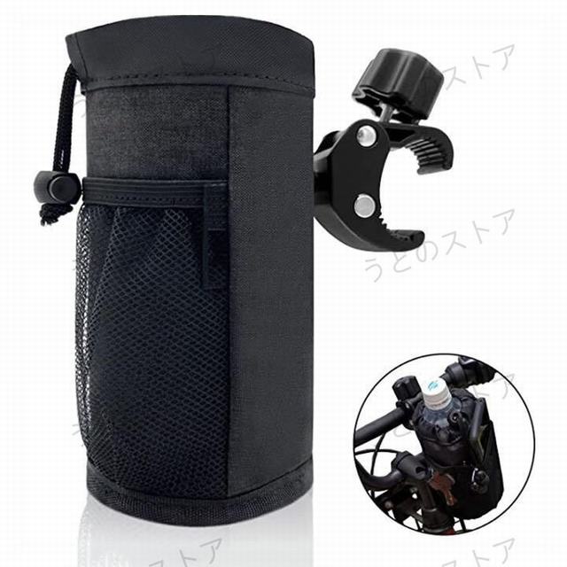 自転車 ドリンクホルダー ハンドル固定 カップホルダー バイク ベビーカー 缶 ペットボトル 取り付け簡単 ママチャリ ロードバイク メッシュポケット付き