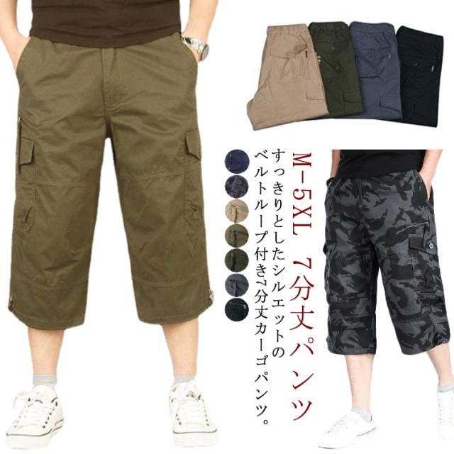 ファスナー カジュアル ポケット付き 大きいサイズ ハーフパンツ 7分丈 クロップドパンツ 作業ズボン 男性用 7分丈パンツ メンズ イージーパンツ 無地 ひざ下 カーゴ 膝下 カーゴパンツ スポーツ 運動 夏服