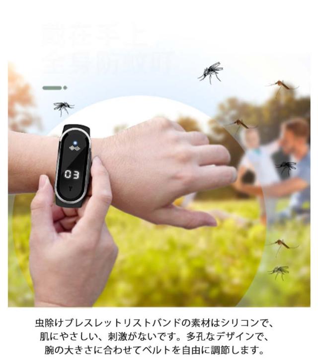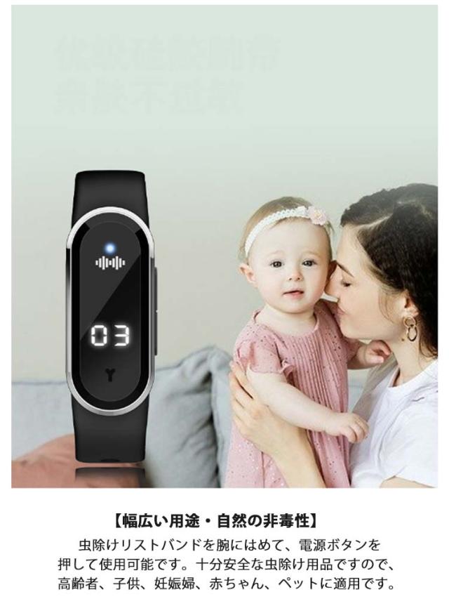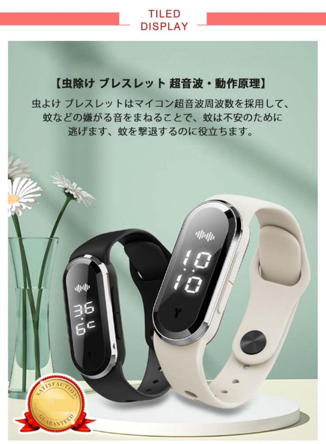 虫除けブレスレット 蚊忌避 温度計測 3段階調節可 腕時計 歩数計 超音波蚊除けリング サイズ調整可能 蚊よけブレスレット USB給電式 携帯便利 超音波蚊よけ 歩数計 虫対策 無毒 無放射 妊婦兼用 子供/大人兼用 旅行 長い待機時間