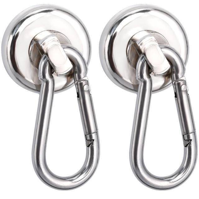 カラビナ フック2個セット 超強力 マグネット フック 360度回転できる カラビナ付き磁石 ネオジム磁石 磁気カラビナ 防錆 超強力磁石 キッ