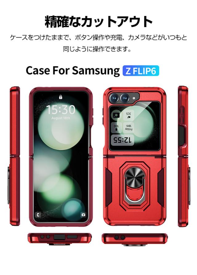 Samsung Galaxy Z Flip6 ギャラクシー Z フリップ6 5G ケース カバー 耐衝撃カバー リング付き スタンド機能 折りたたみ型 ケース 傷やほこりから守る TPUとPC素材 軽量 持ちやすい カッコいい 便利 実用 人気 おすすめ おしゃれ 便利性の高い 背面 ハードカバー CASE