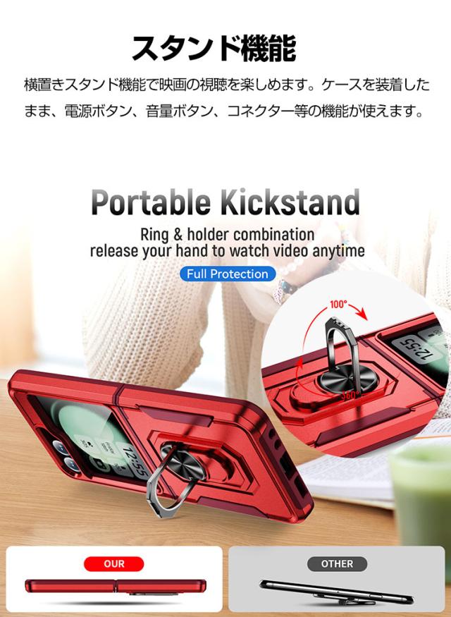 | 商品名 | Samsung Galaxy Z Flip6 ギャラクシー Z フリップ6 5G ケース カバー 耐衝撃カバー リング付き スタンド機能 折りたたみ型 ケース 傷やほこりから守る TPUとPC素材 軽量 持ちやすい カッコいい 便利 実用 人気 おすすめ おしゃれ 便利性の高い 背面 ハードカバー CASE | |||||
