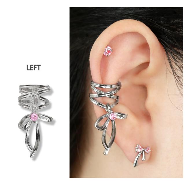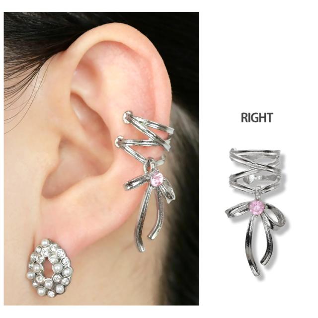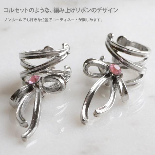 ピアスホールがなくても、好きな位置でコーディネートできます。まげて自由に幅が変えられるフリーサイズ。コルセットのように編み込んだリボンデザインが地雷系っぽくてかわいい。真鍮製なのでアレルギーの強い方はご使用をお控えください。