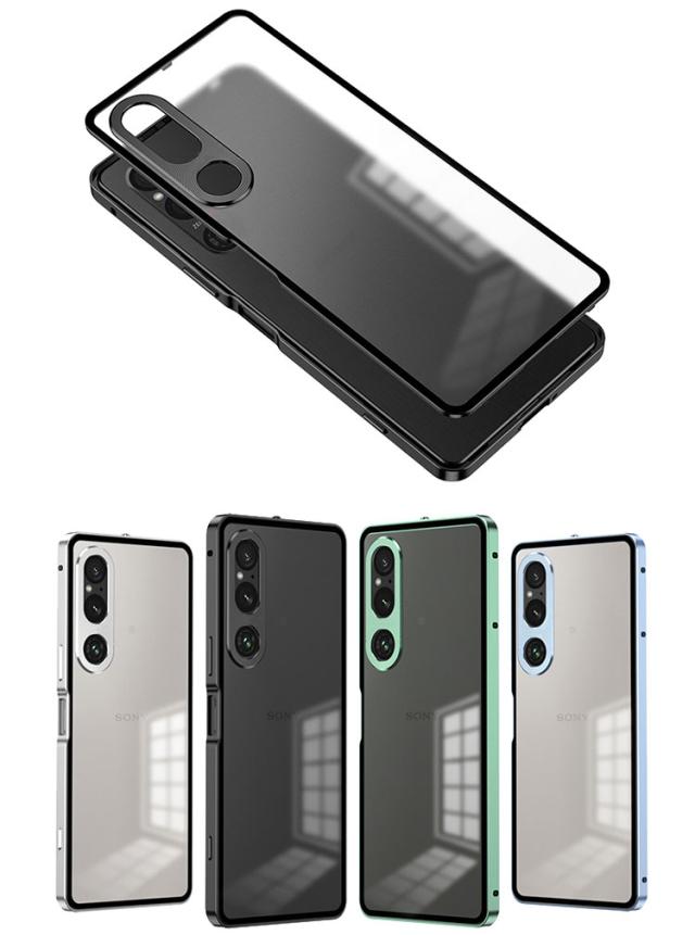 SONY Xperia 1 VI SO-51E/XQ-EC44/Xperia 10 VI SO-52E ケース 耐衝撃 カバー アルミバンパーケース 枠 フレーム 軽量 持ちやすい PC背面 高級感 金属 レンズ プロテクター カメラレンズ保護カバー エクスペリア 1 VI 10 VI 背面 カバー 強化ガラスフィルム おまけ付き