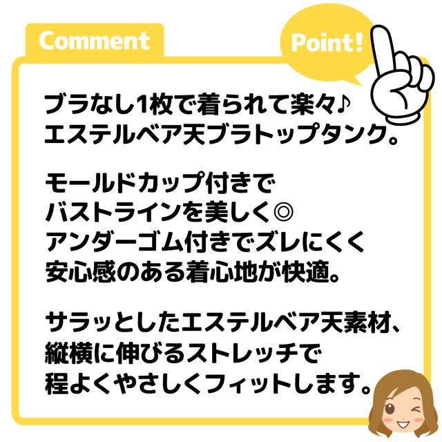 【送料無料】婦人 レディース ブラトップタンク モールドカップ付き エステルベア天 ストレッチ ブラなし1枚で着られる ノンワイヤー 肌着 下着 インナー M L LL yg-2467【メール便対応】