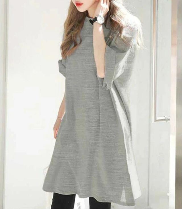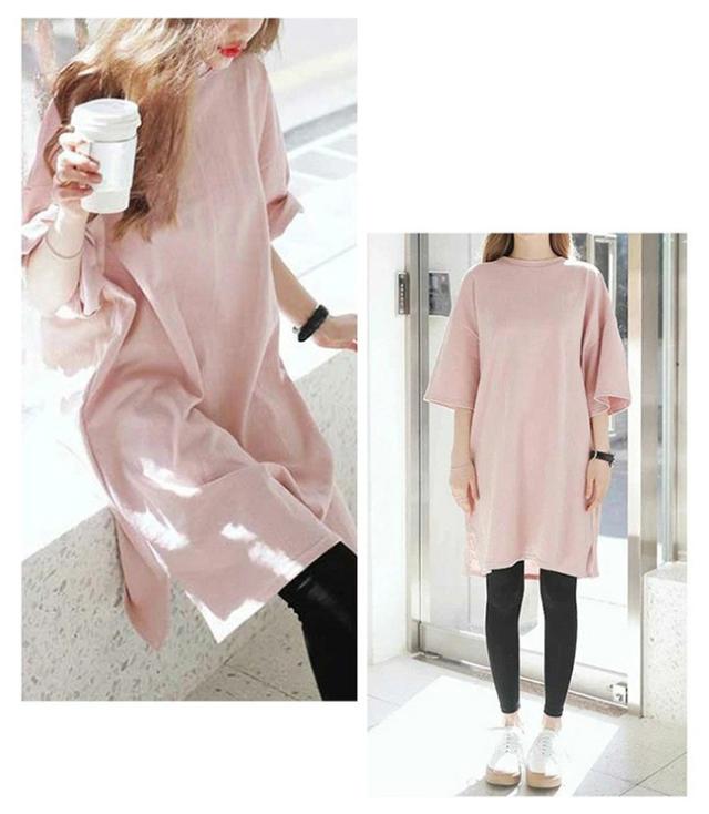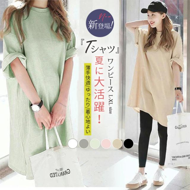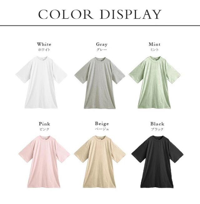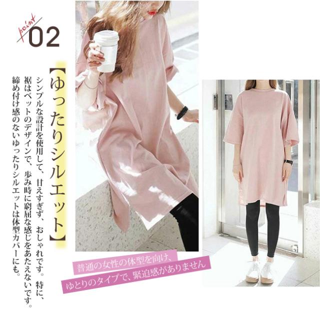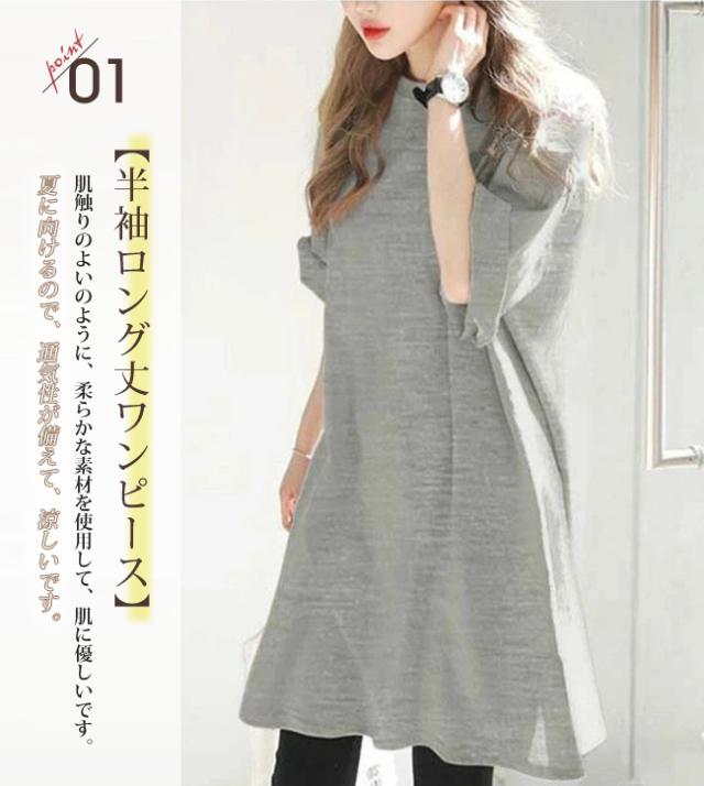 ワンピース クルーネック ひざ丈 チュニック丈 汗染み防止 Tシャツ ワンピース レディース 半袖 綿100% コットン UV 紫外線カット 大きいサイズ ゆったり