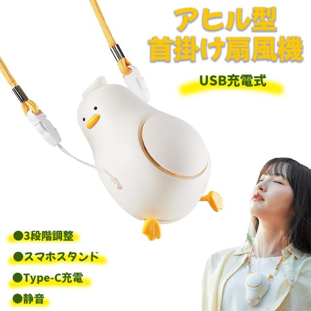 アヒル型 携帯扇風機 首掛け扇風機 子供に向け安全設計 3段階風量切替 USB充電式 91g超軽量 手持ち扇風機 パワフル送風 携帯扇風機 ハンディファン 暑さ対策 子供 小学生 女性 夏 可愛 ギフト ミニ扇風機 ハンディファン 自宅/オフィス用/プレゼント