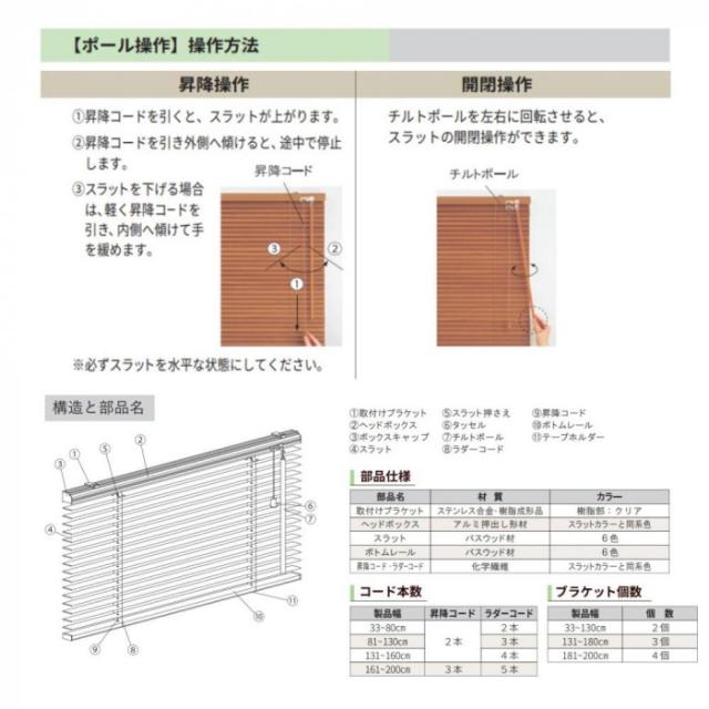 ウッドブラインド ポール右操作(50cm) 25mm幅 幅33cm×高さ108cm グレージュ・TW-4512 |b03