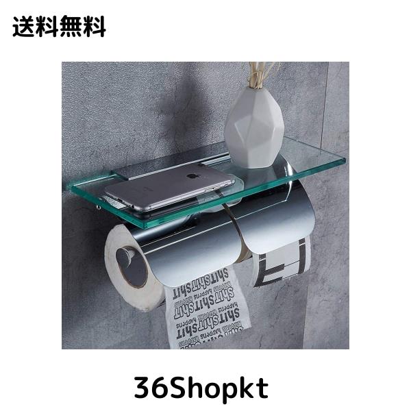 ◆商品名:トイレットペーパーホルダー 紙巻器2連、壁掛け式、ソリッドブラス+ガラス製、光沢のあるクロム仕上げ、シンプルスタイル、トイレットお