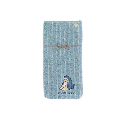 タオル美術館(TOWEL MUSEUM) MOFUSAND おすわり ロングポシェチーフ ブルー サメにゃん 猫 リボン ペットボトルケース 可愛い 43-0040120 約12.5×24CM