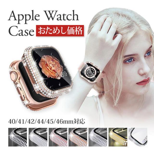 アップル ウォッチ apple watch カバー ケース キラキラ 宝石 ダイヤ 保護 ガラス フィルム 一体型 耐衝撃 46mm 45mm 44mm 40mm 38mm 42mm デザイン おしゃれ ピンク オーロラ ブラック レディース 女性