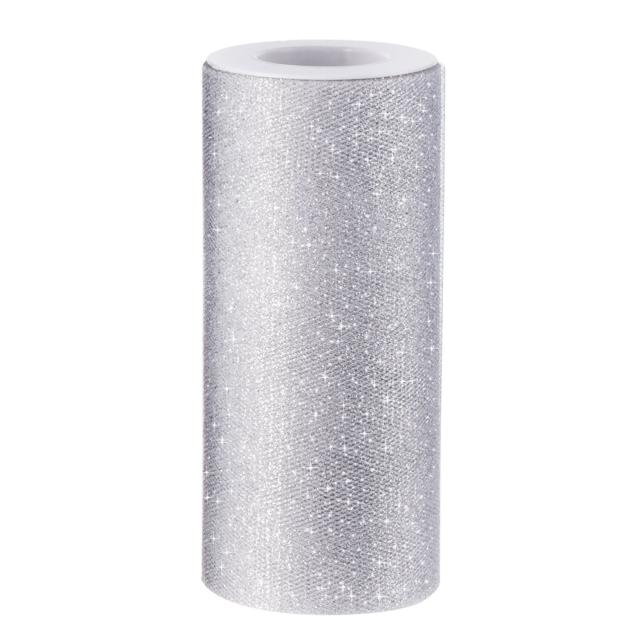 グリッター チュールロール ハード 生地 スパンコール キラキラ 結婚式 DIY 宴会 装飾 DIY ギフトラップ 幅約15cm 約23メートル (シルバー)