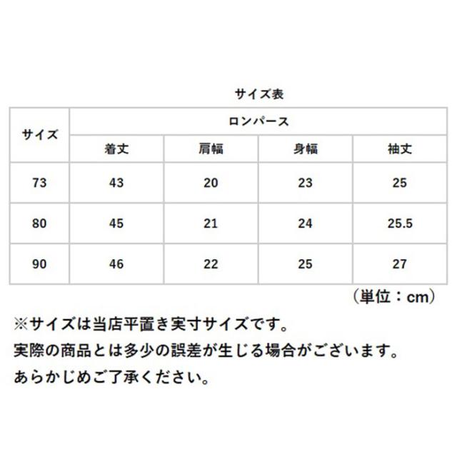| サイズ | [ベビー] ・73cm ・80cm ・90cm ※サイズについて詳細は、商品画像の中にあるサイズ表をご覧くださいませ。 |