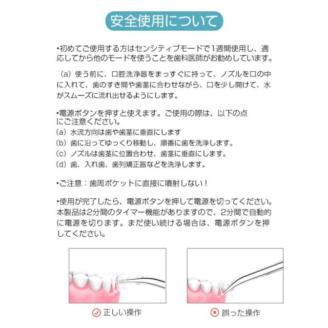 5.点射モード:定点噴射、歯列矯正している方に適しています。