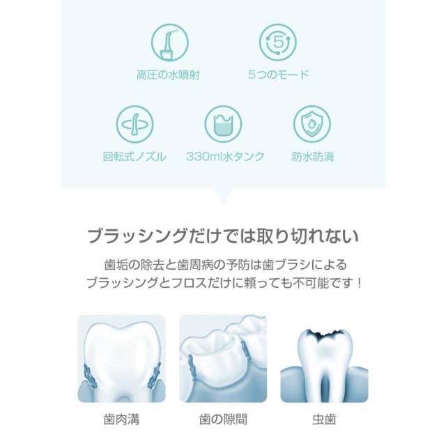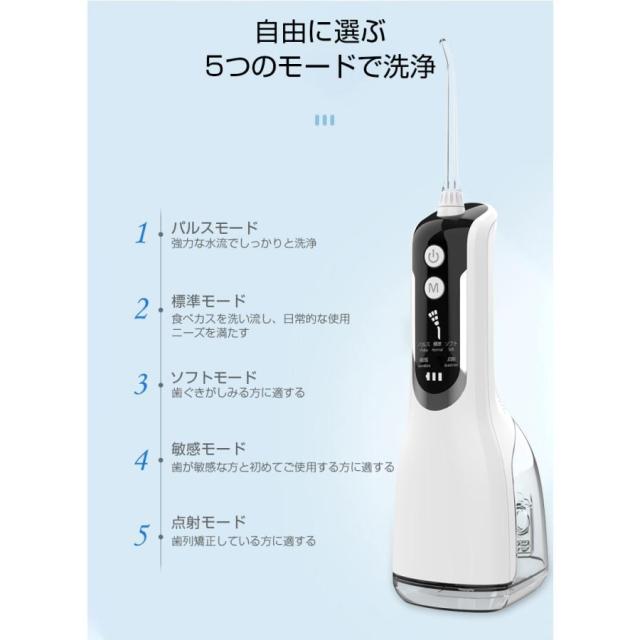 口腔洗浄器 ジェットウォッシャー 口腔洗浄機 据え置き 5つモード調節可能 防水 携帯型 歯間ジェット 歯周ポケット 洗浄 歯垢除去 USB充電式