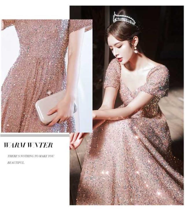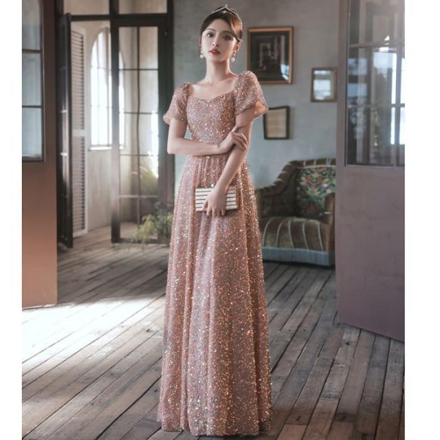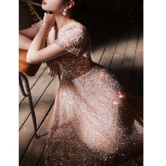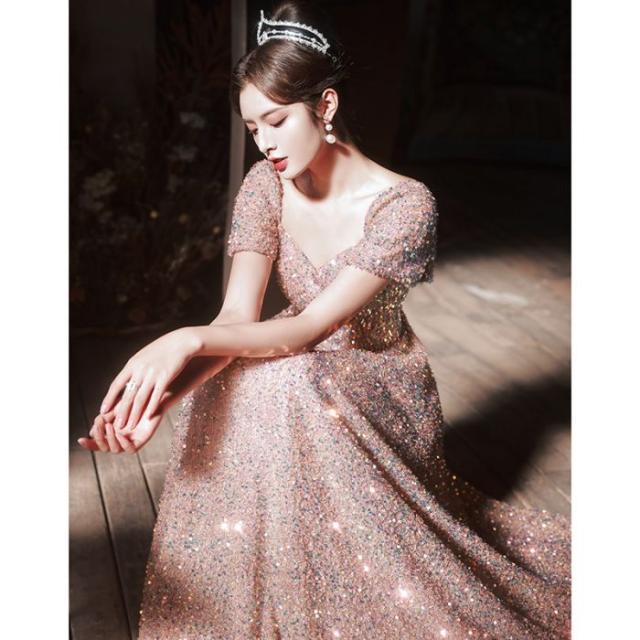 イブニングドレス バンケットスパンコール ピンク レディースドレス キラキラ 着?せ 2024 新しい ロングドレス 演奏会 エレガント パーティー 成人式