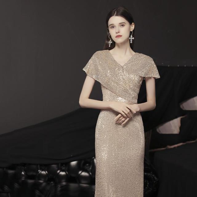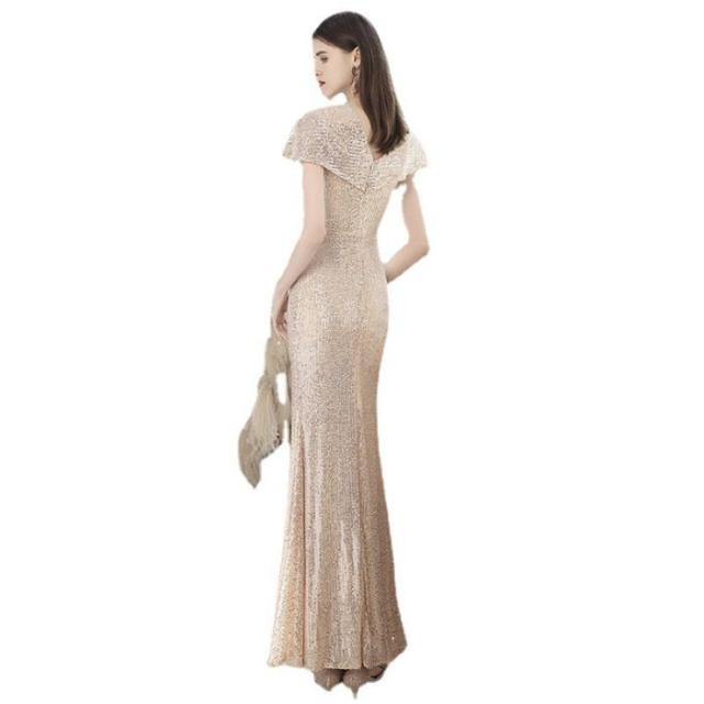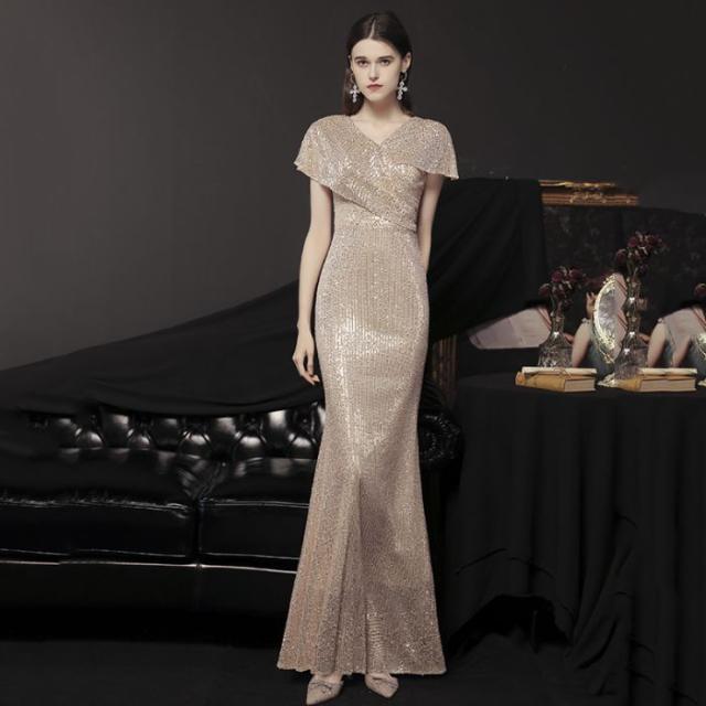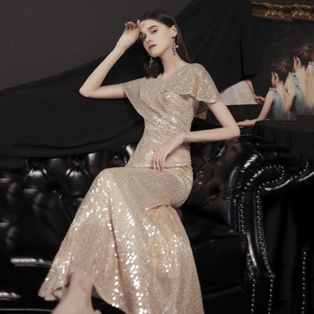 マーメイドドレス イブニングドレス シャンパン バンケットスパンコール 演奏会 エレガント 着?せ 気品 ロングドレス 結婚式 パーティー 成人式