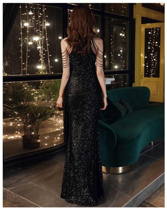 マーメイドドレス イブニングドレス セクシー ブラック バンケットスパンコール 演奏会 エレガント 着?せ 気品 ロングドレス 結婚式 パーティー 成人式