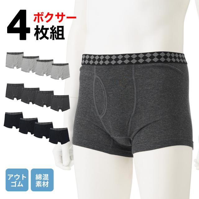 4枚組 ボクサーブリーフ アウトゴム メンズ 年間 パンツ 前開き 肌着 下着 インナー 綿混 紳士 男性 T0215E-E