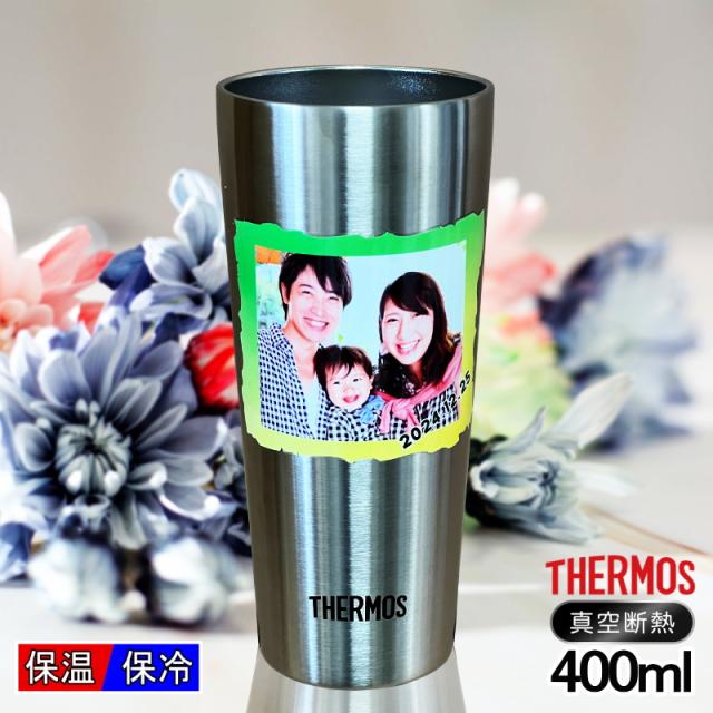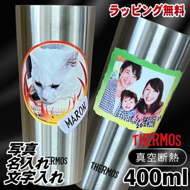 写真入り タンブラー サーモス 名入れ プレゼント 真空断熱 保温 保冷 ステンレス 名前入り ペット うちの子 写真 オリジナル グッズ 犬 猫 ペットオリジナルグッズ プリント 印刷 グラス コップ 父の日 母の日 誕生日 バースデー ギフト 400ml JDI-400 PSYN-10