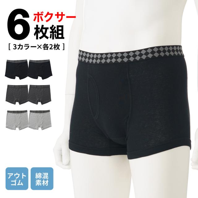 6枚組 ボクサーブリーフ アウトゴム メンズ 年間 パンツ 前開き 肌着 下着 インナー 綿混 紳士 男性 T0215E-E