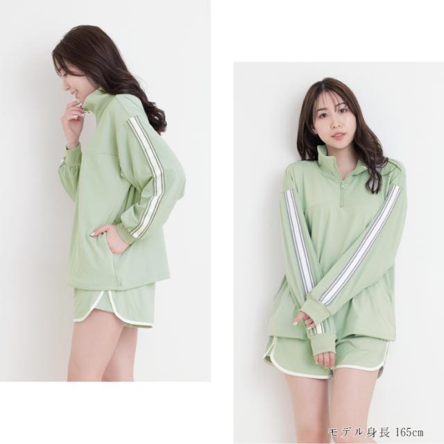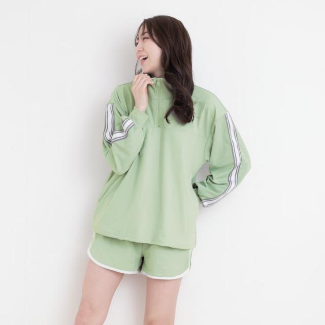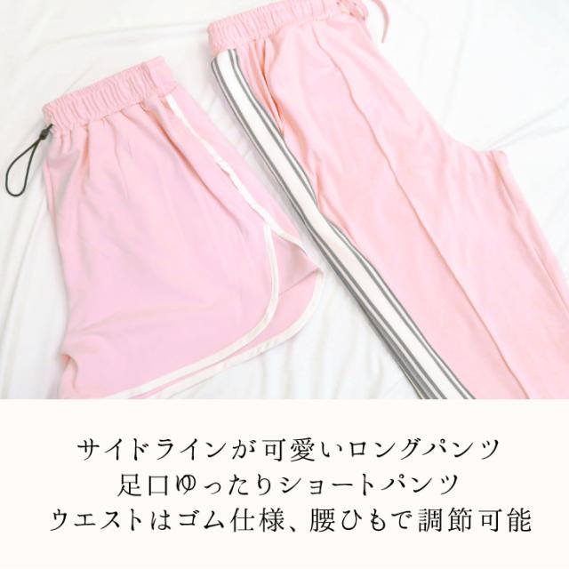 カラーがカワイイ韓国風セットアップのルームウェア。今流行りのジャージデザイン×可愛いカラーでいつものおうち時間も気分がUP。伸びる素材を使用し、パンツのウエストはゴムなので着心地抜群です。季節に合わせられる嬉しい2型展開。色を合わせて女子会にも◎カラーは選べる4色です。