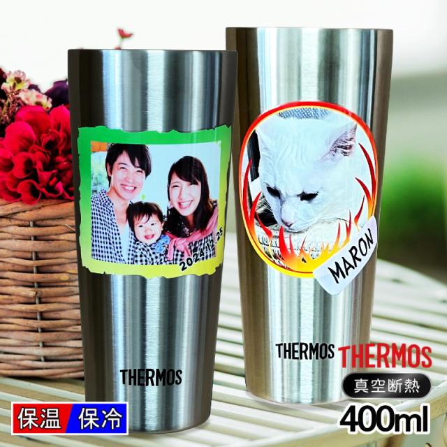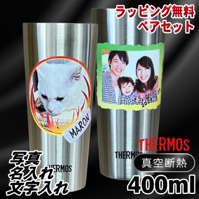 写真入り タンブラー サーモス ペア 名入れ プレゼント 真空断熱 保温 保冷 ステンレス 名前入り ペット うちの子 写真 オリジナル グッズ 犬 猫 ペットオリジナルグッズ プリント 印刷 グラス コップ 父の日 母の日 誕生日 バースデー ギフト 400 ml JDI-400P PSYN-100