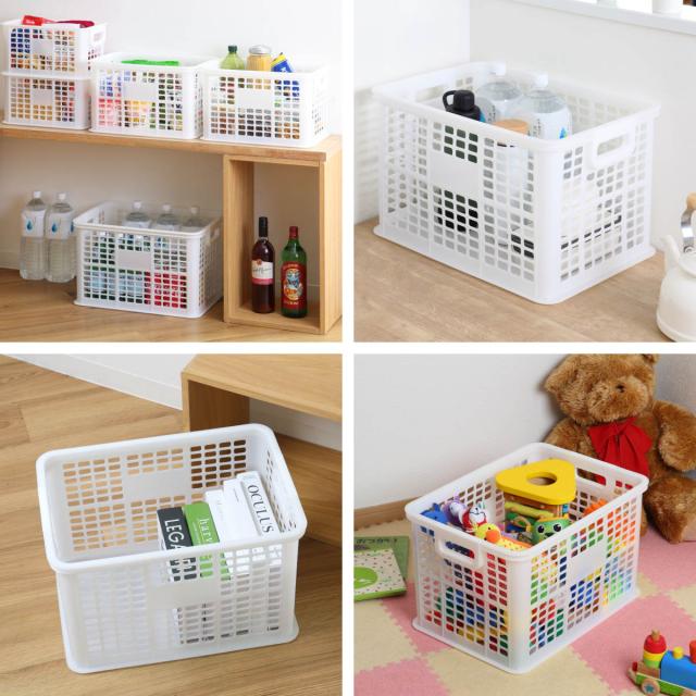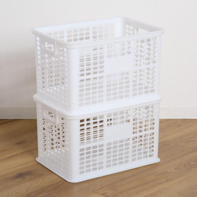 《 LH15804 持ち手 フタなし 通気性 ケース ボックス フ 整理整頓 整理 整頓 片付け オモチャ箱 おもちゃ箱 オモチャ入れ おもちゃ入れ おもちゃ収納 オモチャ 玩具 リビング ランドリー スタッキング サイズ違い 入れ子 ホワイト 白 シンプル お菓子 洗剤 タオル 洗面所 約 幅45 奥行30 奥行35 高さ25 高さ30 cm センチ 》