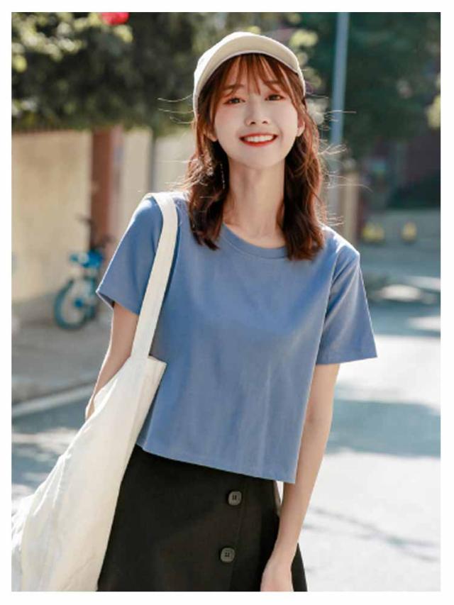 トップス クロップド丈tシャツ 半袖 クロップド丈tシャツ 丸首 シンプル ショート丈 tシャツ ラウンドネック カットソー 脚長効果 7色 おしゃれ 半袖tシャツ 無地 夏 20代 10代 送料無料