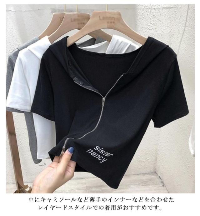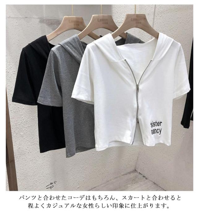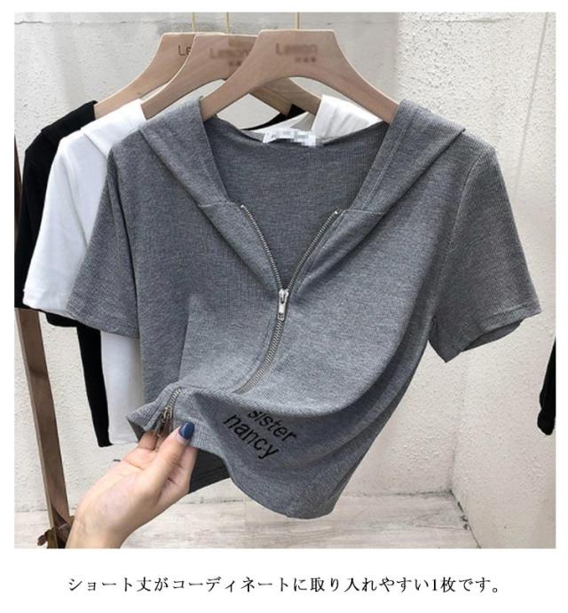 パーカー パーカー レディース 薄手 ジップアップ おしゃれ ショート丈 ジップパーカー 半袖tシャツ 半袖 半袖カットソー フード付き カジュアル 羽織り レイヤード 女性用 涼しい 夏パーカー 着?せ 体型カバー 無地 シンプル 春夏 ギフト