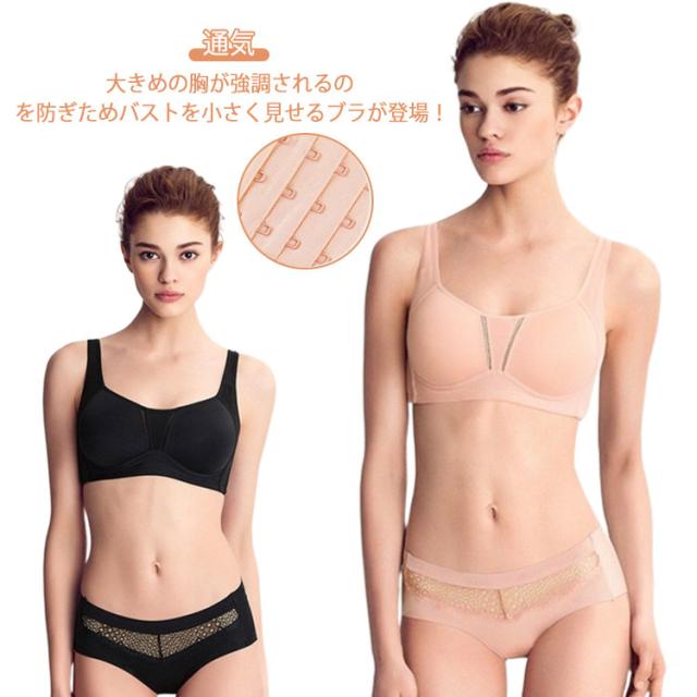 バストアップ 通気 スポーツブラ ブラジャー ノンワイヤー ブラ 大きな胸を小さく見せるブラ 胸を小さく見せるブラ 大きいサイズ 揺れ軽減 シームレス ブラトップ タンクトップ 着やせブラ 補正 見痩せ ブラジャー 谷間カバー 胸押え 下着女性 細見え効果