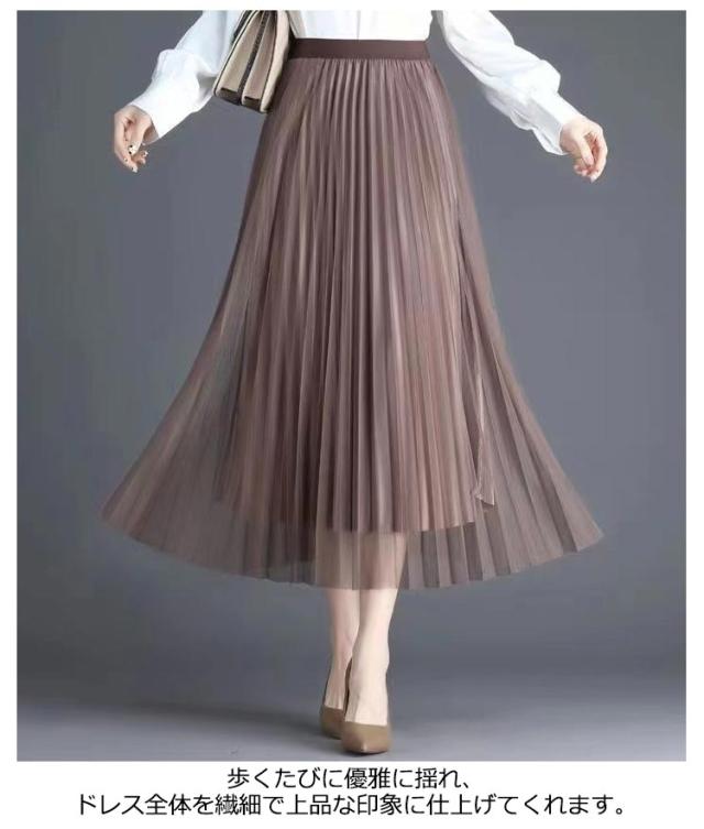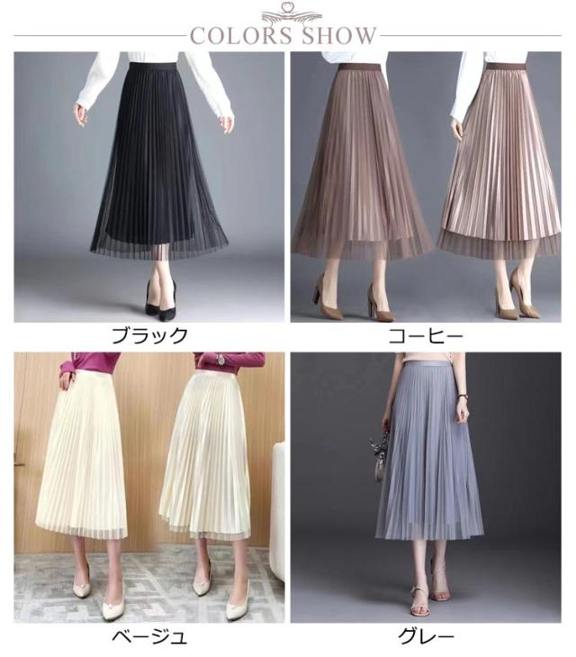 プリーツスカート 夏 レーススカート 無地 ミモレ丈 フレア プリーツスカート スカート リバーシブル Aライン 裏地付き 春 おしゃれ 秋 ゴムウエスト 大人可愛い レディース 膝下 体型カバー きれいめ 黒 ブラック コーヒー ベージュ