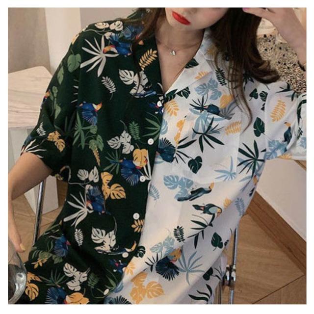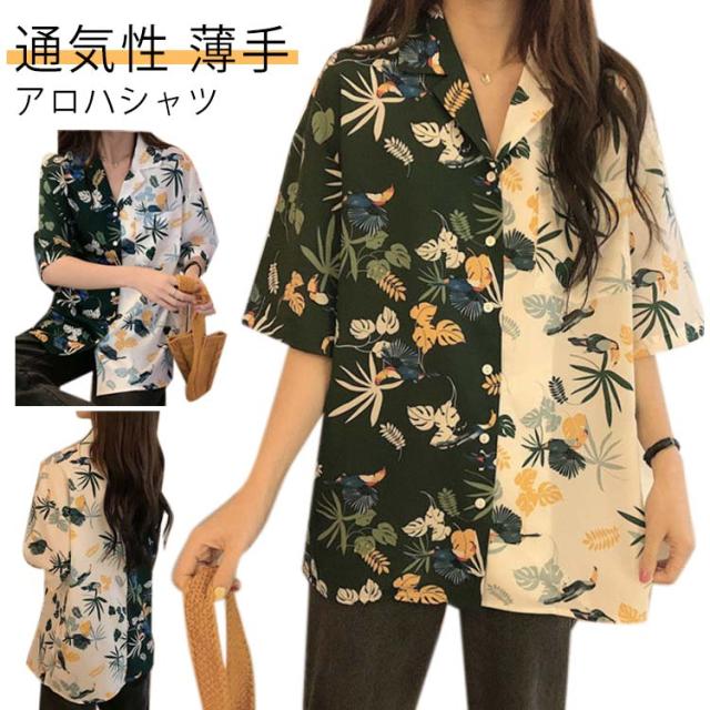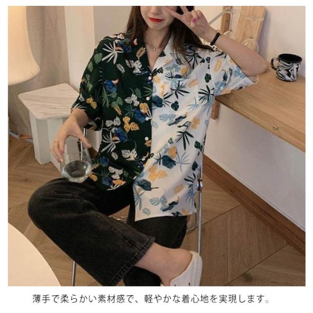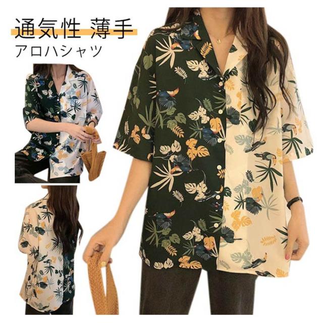 花柄 トップス レディース 原宿系 個性的 ダンス衣装 ブラウス ビーチウェア 半袖 開襟 通気性 超軽量 アロハシャツ 総柄 シャツ 柔らかい 涼しい おしゃれ カジュアル シャツ ヒップホップ