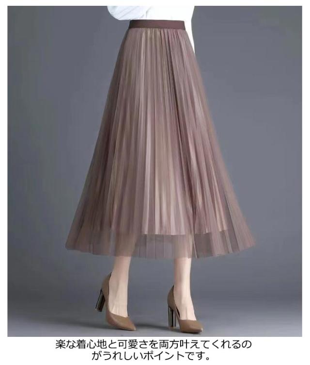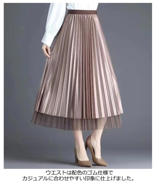 春 Aライン プリーツスカート 膝下 レーススカート フレア 無地 スカート プリーツスカート ミモレ丈 裏地付き きれいめ 夏 秋 ゴムウエスト 大人可愛い レース リバーシブル 体型カバー おしゃれ 黒 ブラック コーヒー ベージュ