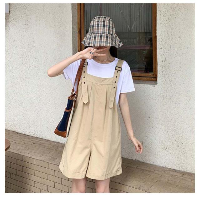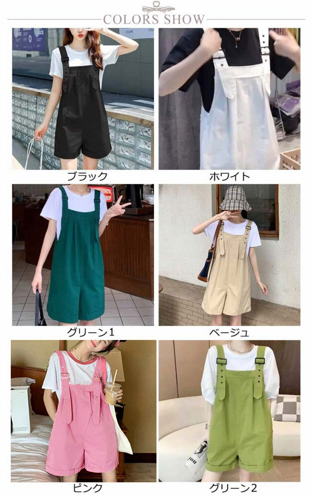 韓国 オーバーオール ワイド パンツ 五分丈 サロペット レディース ハープパンツ 無地 ショート丈 ワークパンツ ワイドパンツ ショートパンツ 薄手 綿 サロペットパンツ オールインワン 体型カバー 着痩せ カジュアル かわいい