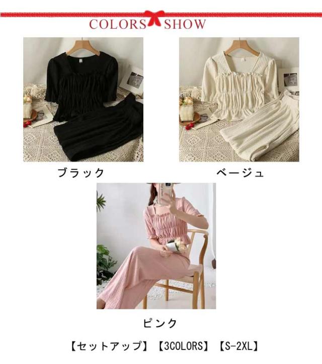 | 【セットアップ】【3colors】【S-2XL】 <ブラウス> ・フリルやティアードデザインが上品な女性らしいブラウス。 ・気になる二の腕や、体型カバーも叶う。 ・1枚で着映えするトップス。 <ワイドパンツ> ・リラクシーな穿き心地が魅力のワイドパンツ。 ・太すぎずないシルエットで、単品使いでも重宝するデザイン。 ・ウエスト総ゴムでストレスフリーな穿き心地。 | |