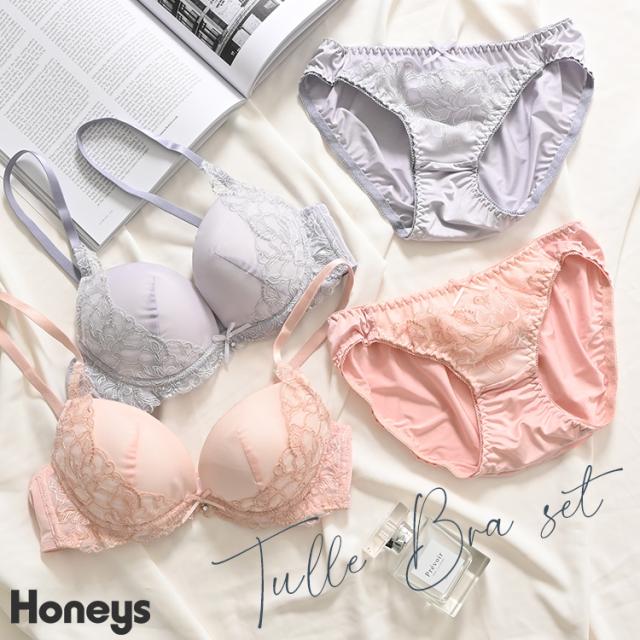 下着 アンダーウェア ブラジャー ショーツ ブラセット レディース 花柄 刺繍 ソフトワイヤー Honeys ハニーズ 花刺繍チュールブラセット