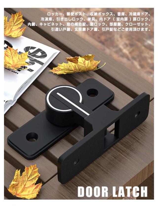 | 選べる90度/180度!スムーズに回転でき、ワンタッチに簡単に開閉できるドアロック。 丈夫で耐久性のある亜鉛合金で作られ、防錆仕様のめっき表面。 簡単施錠で貴重品管理や安全対策、防犯対策、子どものドア開け防止、猫の脱走防止、戸棚開け対策に適しています。様々な危険を防止できます。 ロッカー、郵便ポスト、収納ボックス、書庫、冷蔵庫ドア、冷凍庫、引き出しロック、家具、内ドア( 室内扉 ) 扉ロック、内鍵、キャビネット、窓の補助錠、窓ロック、部屋鍵、クローゼット、引違い戸鍵、玄関鍵ドア鍵、引戸錠などご使用頂けます。 | |
