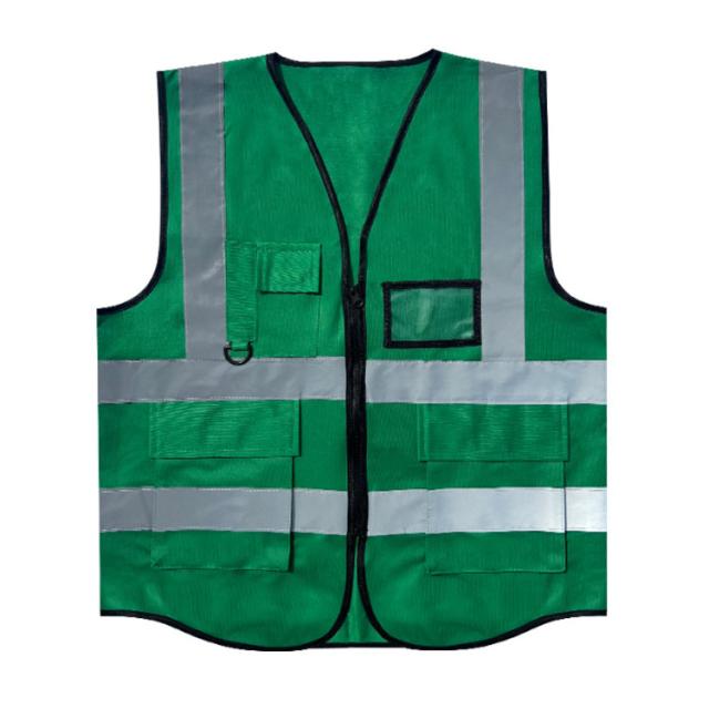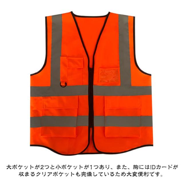 | 光反射ベスト。冬は温かく、夏は涼しい素材で、洗いやすく速乾性にも優れています。 光反射加工を施した光反射ボーダー付きのため、夜間でも高明瞭度の光反射で、全方向からあなたの安全をお守りします。 大ポケットが2つと小ポケットが1つあり、また、胸にはIDカードが収まるクリアポケットも完備しているため大変便利です。 開閉しやすく、耐久性のあるファスナーを採用しています。 | |