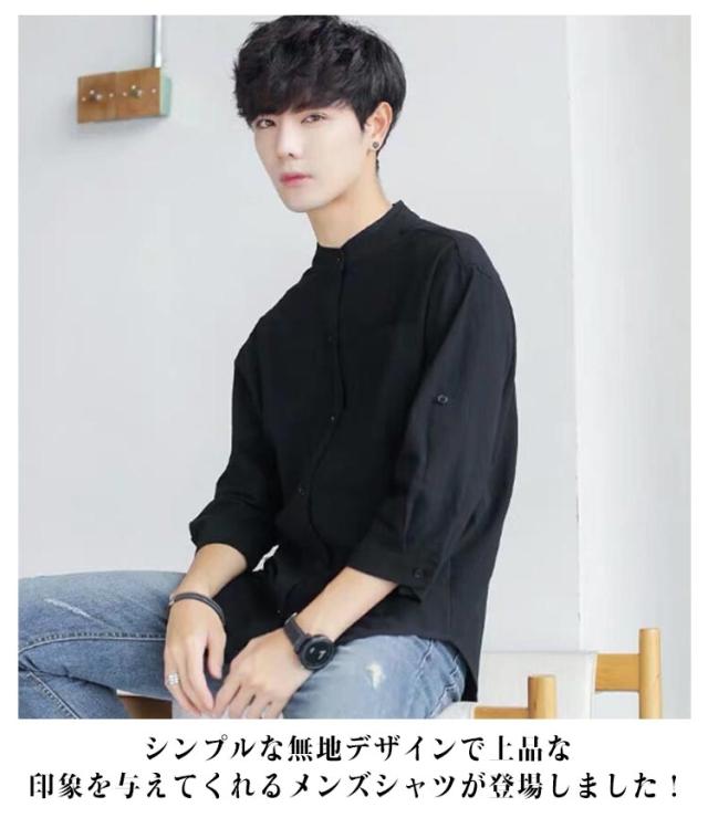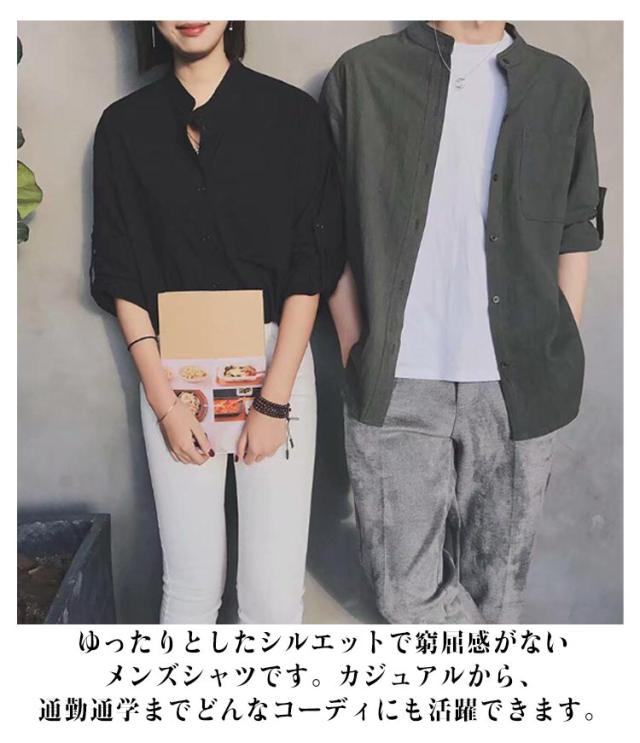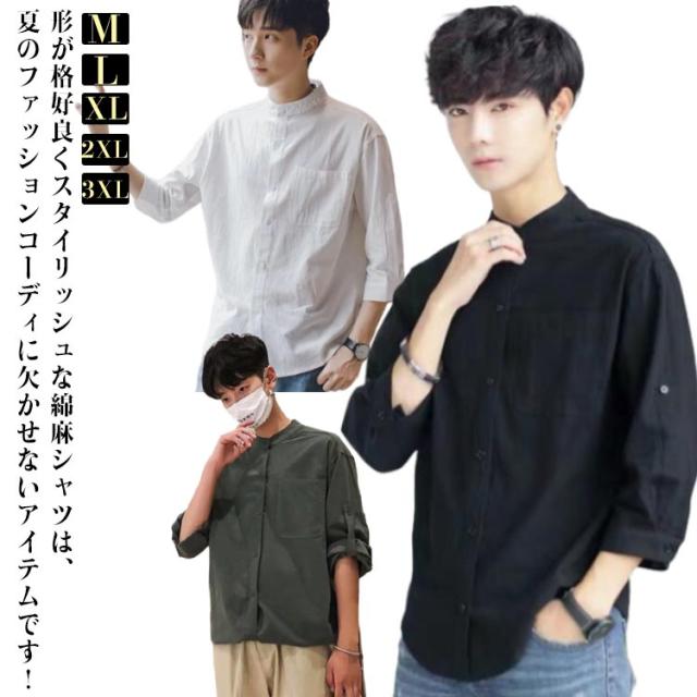 夏服 スリム 長袖 七分袖 おしゃれ 春服 綿麻風 シンプル シャツ 綿麻風 ワイシャツ 涼しい 立ち襟 無地 リネンシャツ カジュアルシャツ 通気 カジュアル ビジネス 日除け 日除け対策 春夏 秋窮屈感ゼロ 速乾