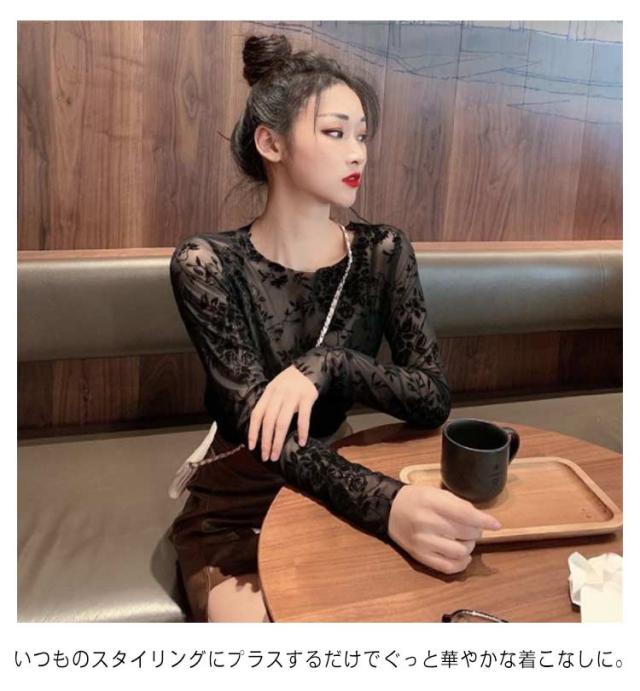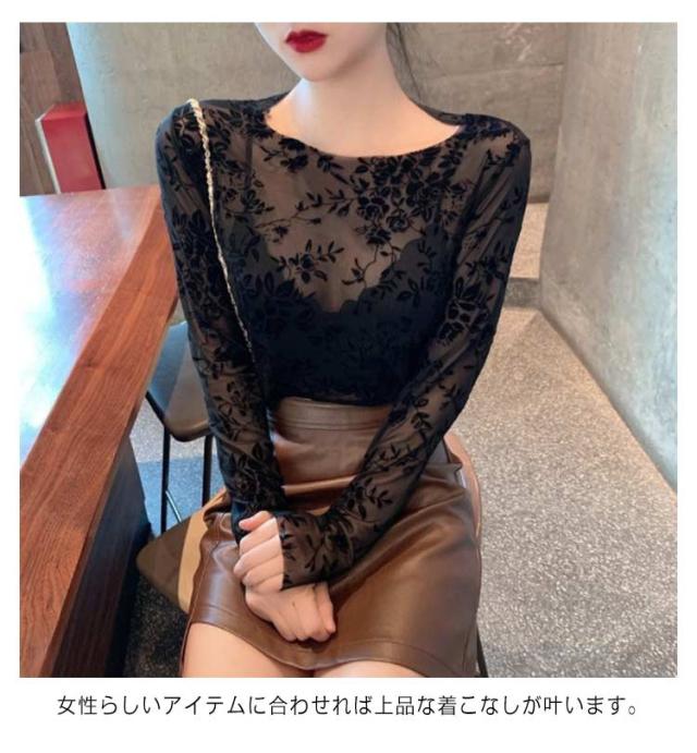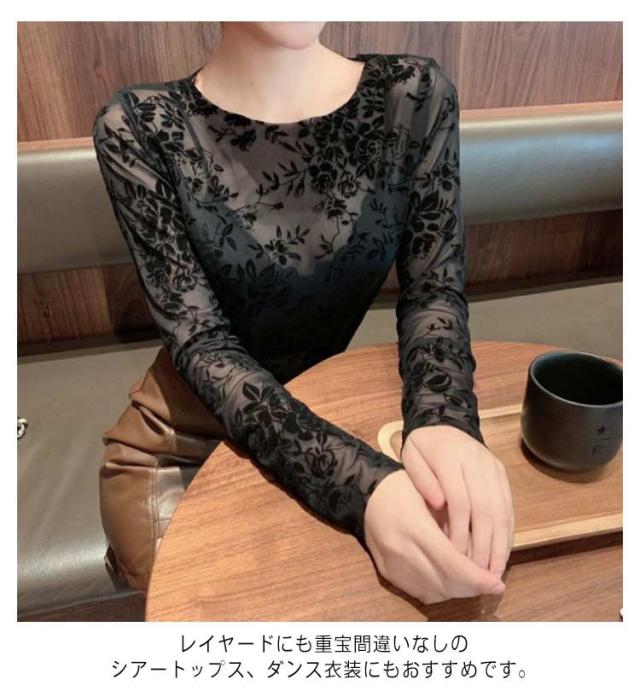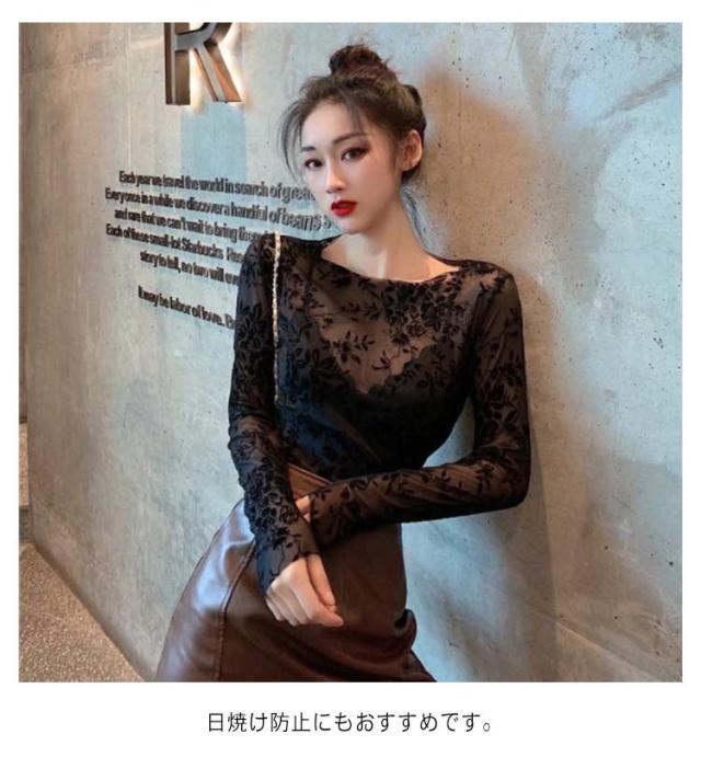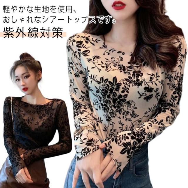 レース 紫外線対策 シアートップス お花モチーフ Tシャツ ひんやり インナーTシャツ シースル ボートネック レース 春 夏 メッシュ セクシー アイスシルク