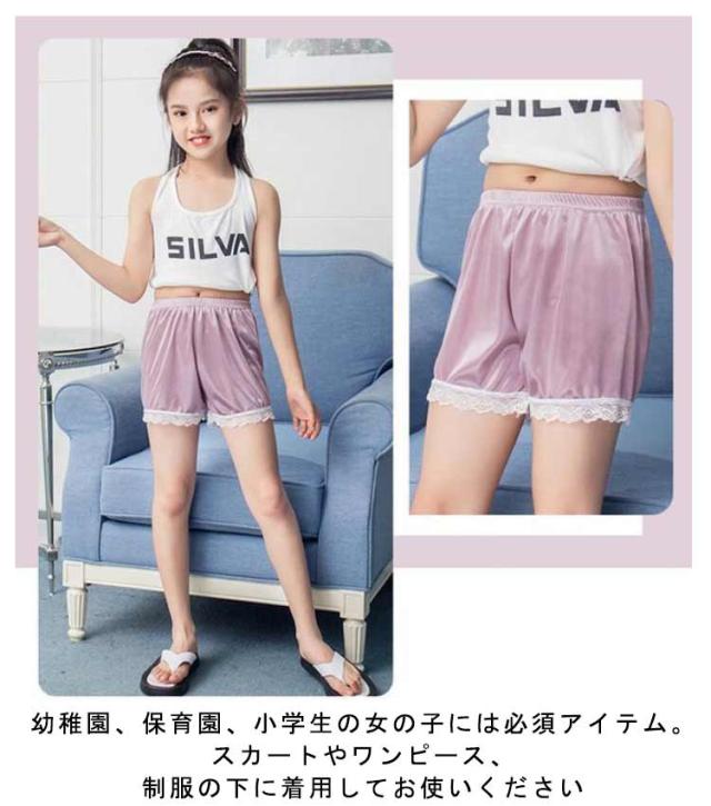 | サマーに最適な冷感素材!子供用のスカートの下に履くパンツです。 裾部分にはレースデザインで、可愛くて、安心のガールズボクサーパンツ! 幼稚園、保育園、小学生の女の子には必須アイテム。スカートやワンピース、制服の下に着用してお使いください | |