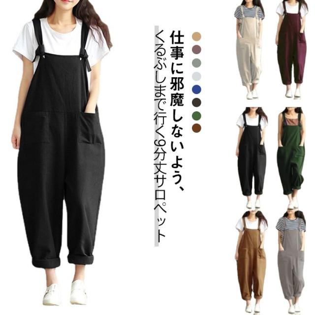 作業服 九分丈 パンツ ビッグシルエット 無地 サロペット ボトムス 薄手 オーバーオール 作業着 サロペット レディース オールインワン マタニティ 絞り裾 チノパン 夏 サロペットパンツ 9分丈 仕事着 ワイドパンツ 大きいサイズ 楽ちん ゆったり 無地