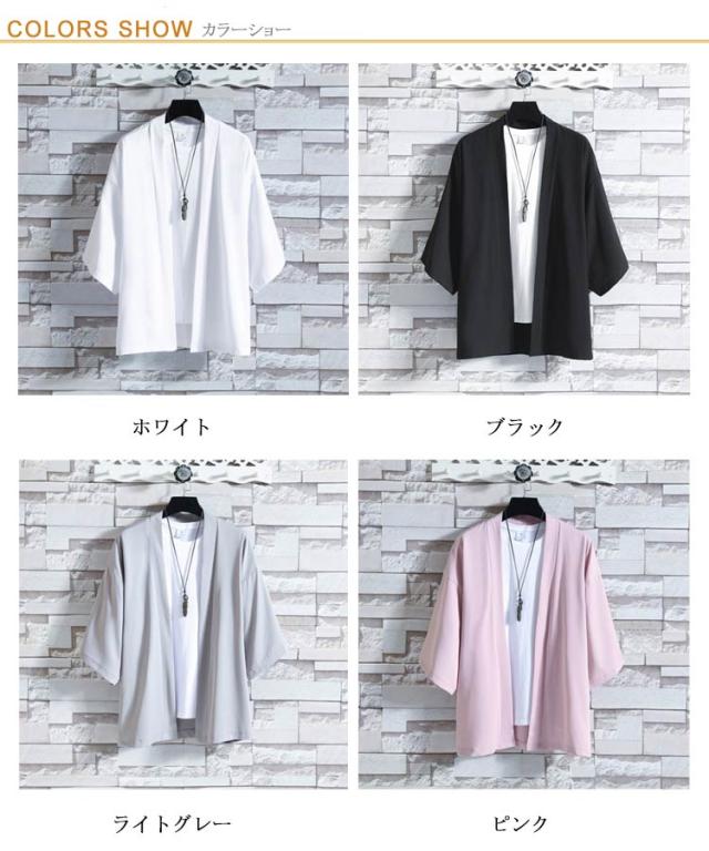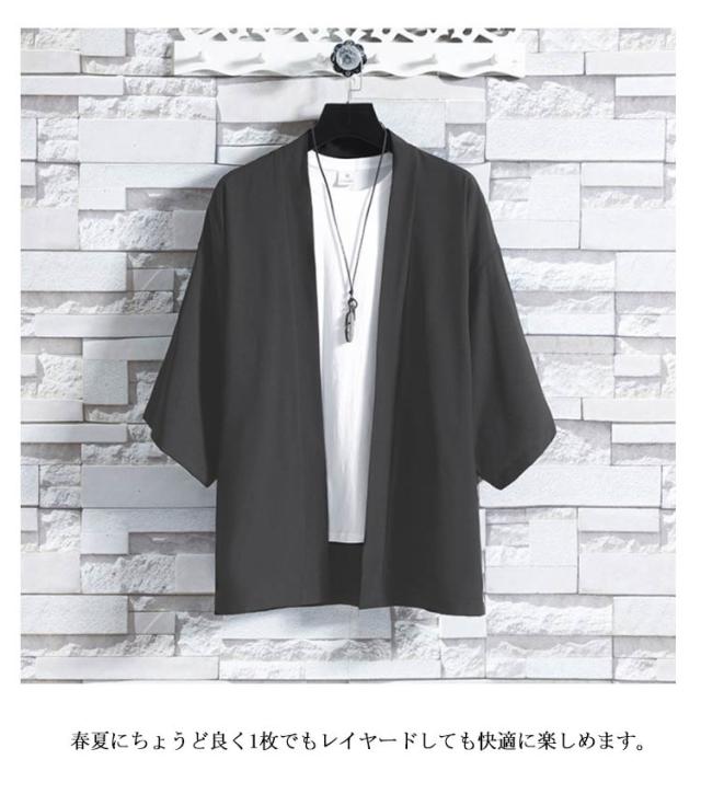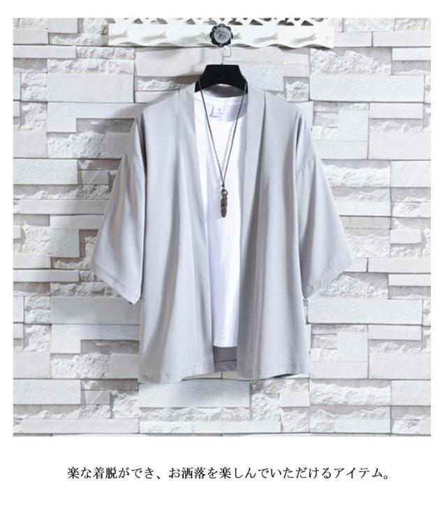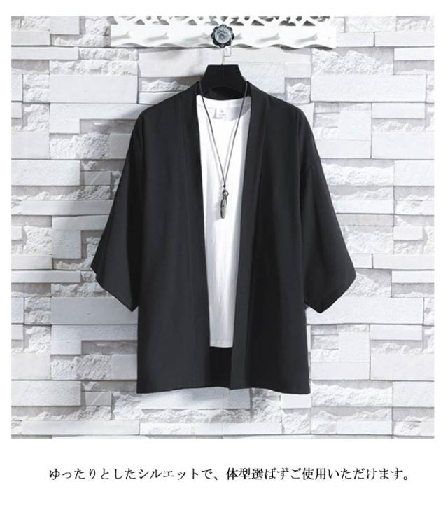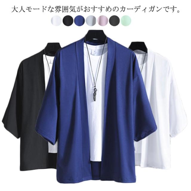 メンズ 七分袖 無地 通気性 ゆったり カジュアル 羽織 無地 軽量 シャツ 和式 和風 夏 春 秋 エアコン対策 カーディガン 大きいサイズ メンズファッション 日常用