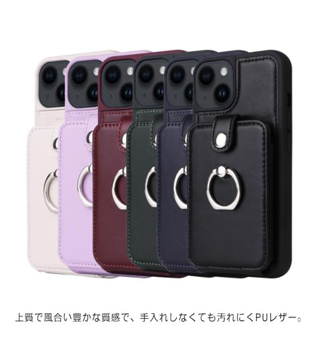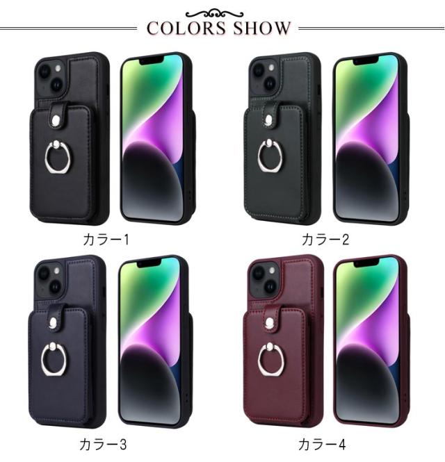 ケース 14 リング付き 15pro 背面カード収納 iPhone15 縦置き 15plus 手帳 スマホケース PUレザー 15promax 14pro カバー 背面カードポケット 横置き 耐衝撃 スタンド カード入れ リンク付き 小銭入れ 軽量 送料無料 シンプル 15promax