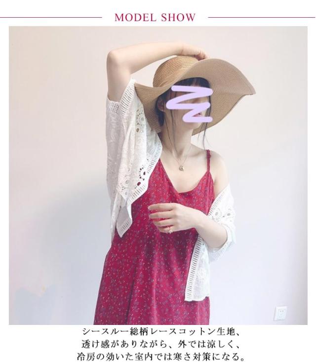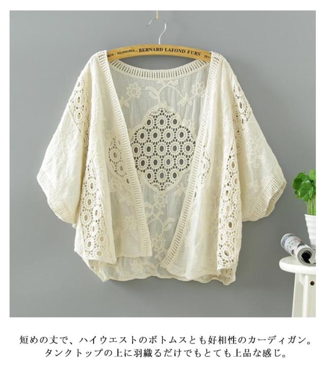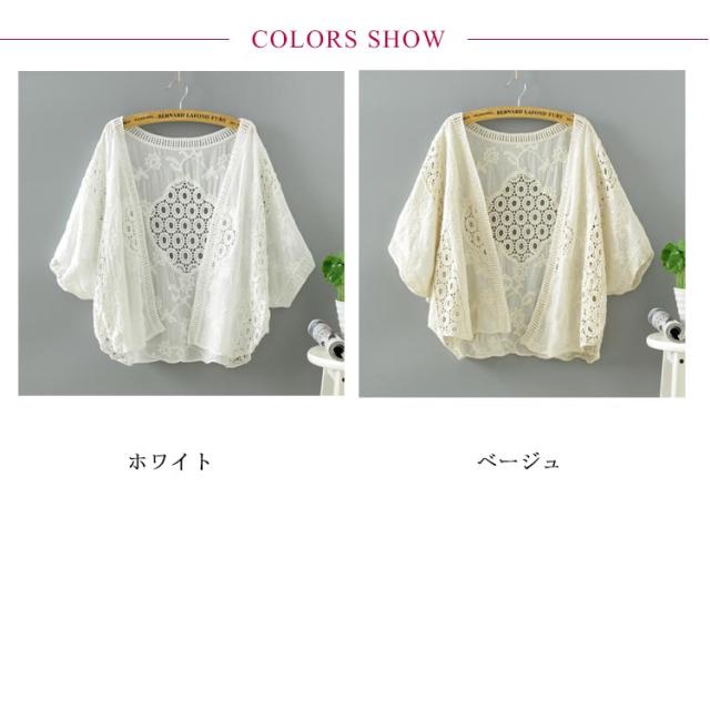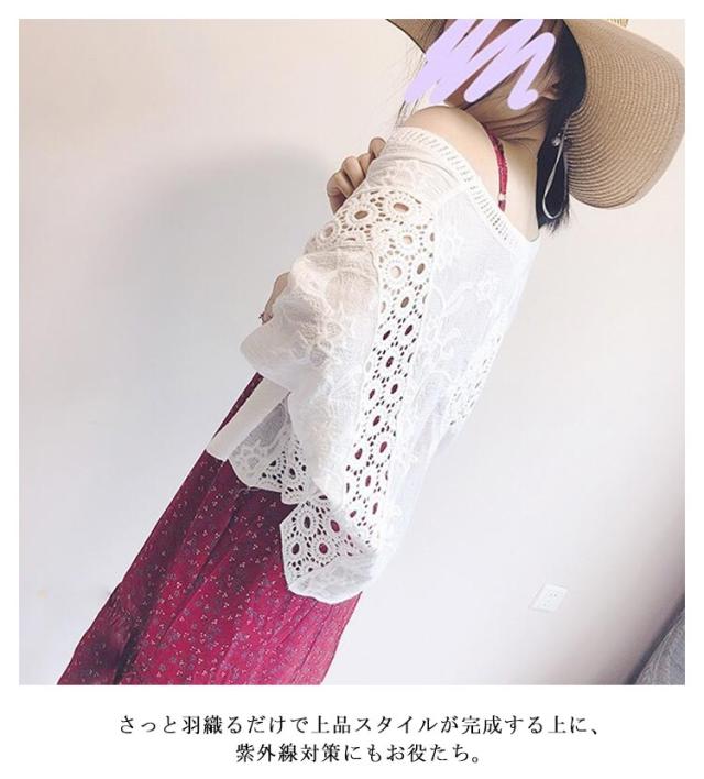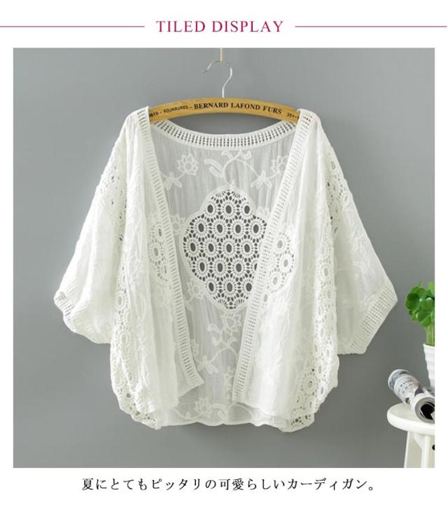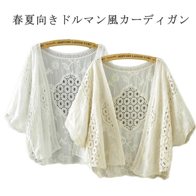 綿 夏 ゆったり 透かし彫り 羽織 体型カバー カーディガン 透け彫り 透ける レディース コットン ドロップショルダー ゆったり レースカーディガン ボレロ サマーカーディガン 羽織り トップス ボリューム袖 可愛い カジュアル オシャレ 上品 ドルマン きれいめ 羽織もの