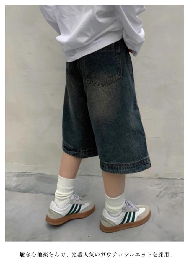 レディース ゆったり デニム ウォッシュ加工 ガウチョ 7分丈 ワイドパンツ 大きいサイズ クロップド 体型カバー 40代 デニムパンツ コットン 春 夏 秋 大人カジュアル 30代 ジーパン