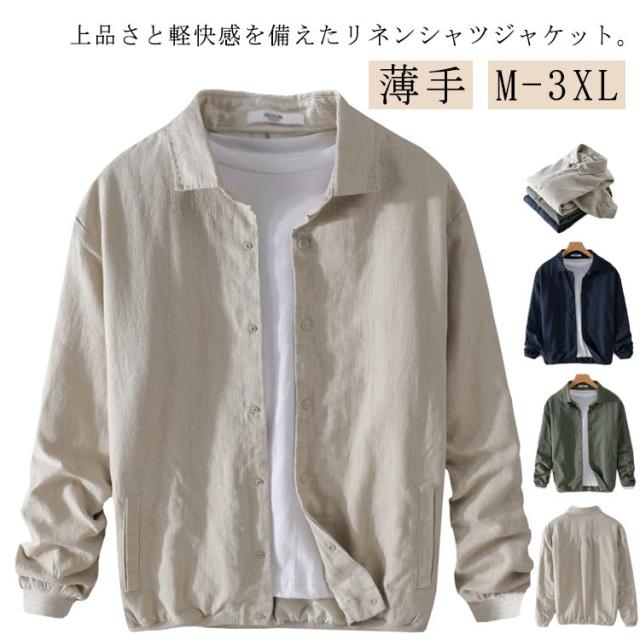 サマージャケット 春用 夏用 リネンジャケット 綿麻 シャツジャケット 羽織り ライトアウター ナチュラル コットンリネン 秋 父の日 麻ジャケット 麻 メンズ ジャケット 薄手 無地